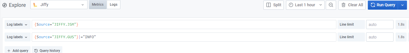 It also provides options to auto-refresh the query results, limit the display of lines in the result, and live tailing.